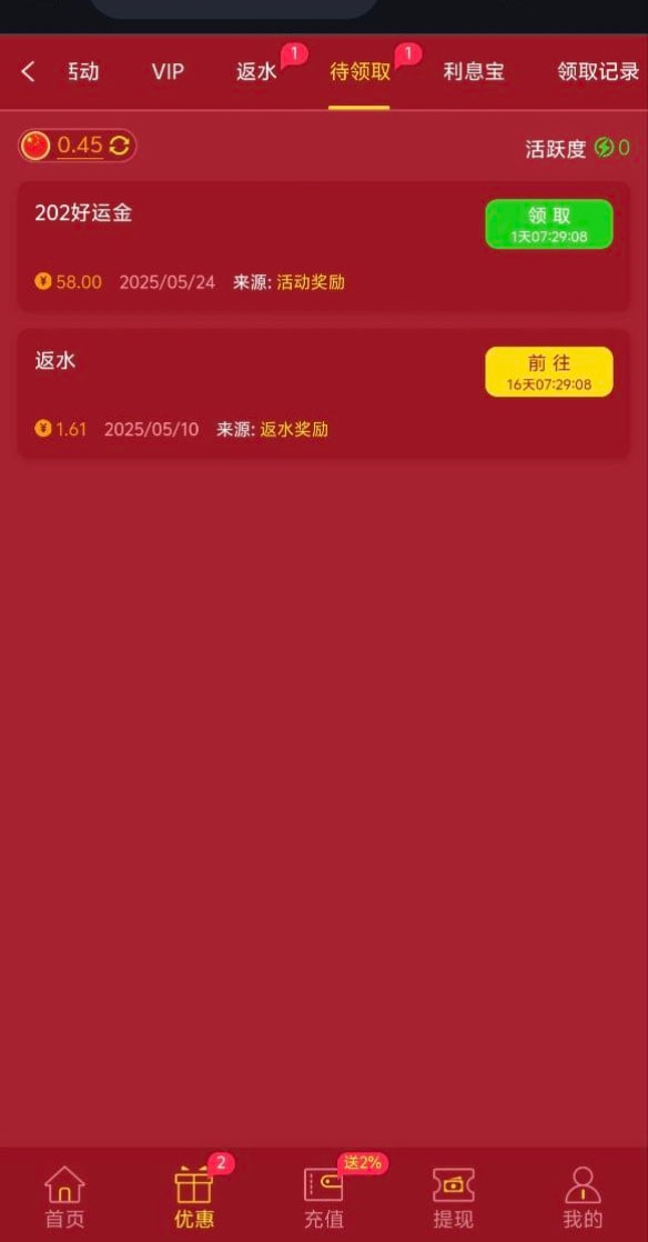 老用户有号充值过的登录部分有好运金30-58彩金,具体自测吧